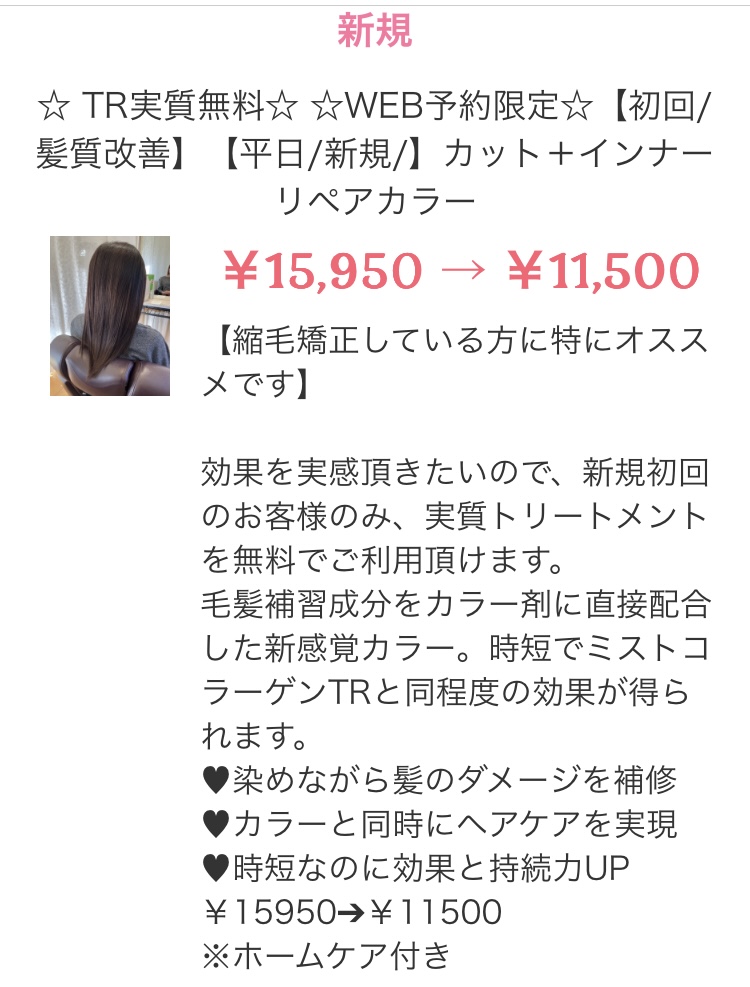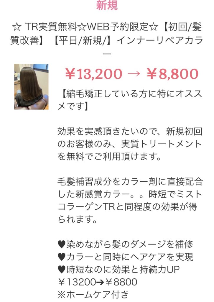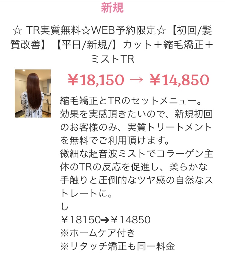 ・ウェブからの予約限定 (電話、ラインからの予約は無効)